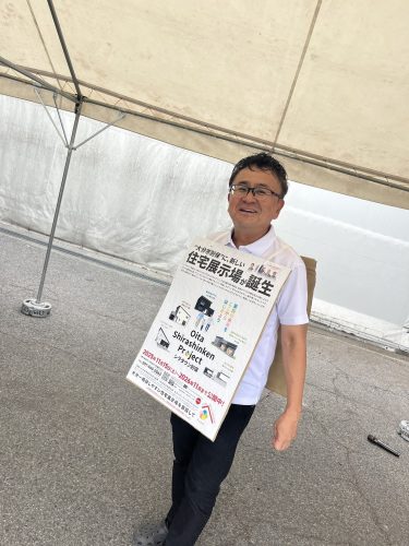 写真は、その中で、私が個別にサポートさせていただいているサンウッドの代表阿南社長です。実は、サンウッドさんのお客様感謝祭にお邪魔してまして、その中で、社長自ら広告塔となってアピールしていました。